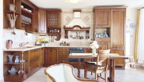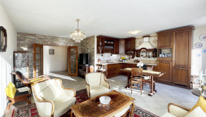 veľká obývačka spojená s kuchyňou do tvaru L