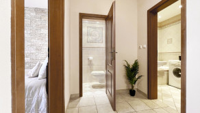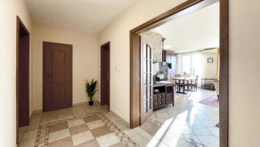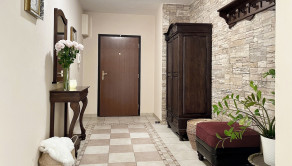 priestranná vstupná chodba s vešiakmi skriňou a konzolovým stolíkom