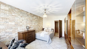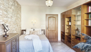 priestranná spálňa s manželskou posteľou a pracovným kútikom
