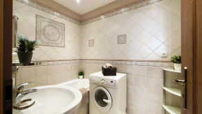 kúpeľňa s vaňou a práčkou