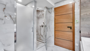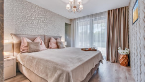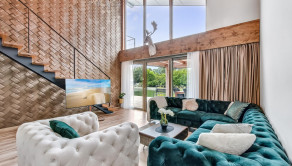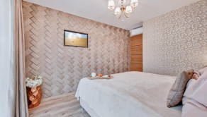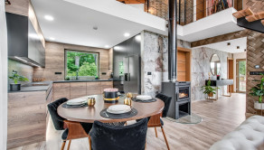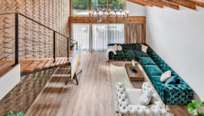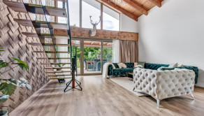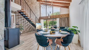 Veľkorysý priestor 180 m² ponúka možnosť dispozičnej flexibility pre rodinu, pár alebo aj kombináciu bývania a podnikania. Interiéru dominuje dizajnová stena s impozantnýn lustrom, ktorá dodáva priestoru výnimočný charakter a luxusnú atmosféru.