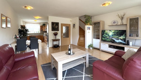 veľká obývacia a kuchynsko-jedálenská miestnosť s výstupom na terasu a do záhrady