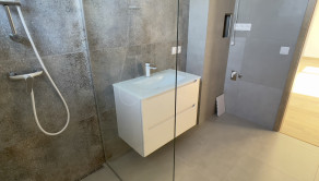 - Obklady, dlažby, laminátové podlahy a sanita Geberit (vaňa, WC, umývadlo)