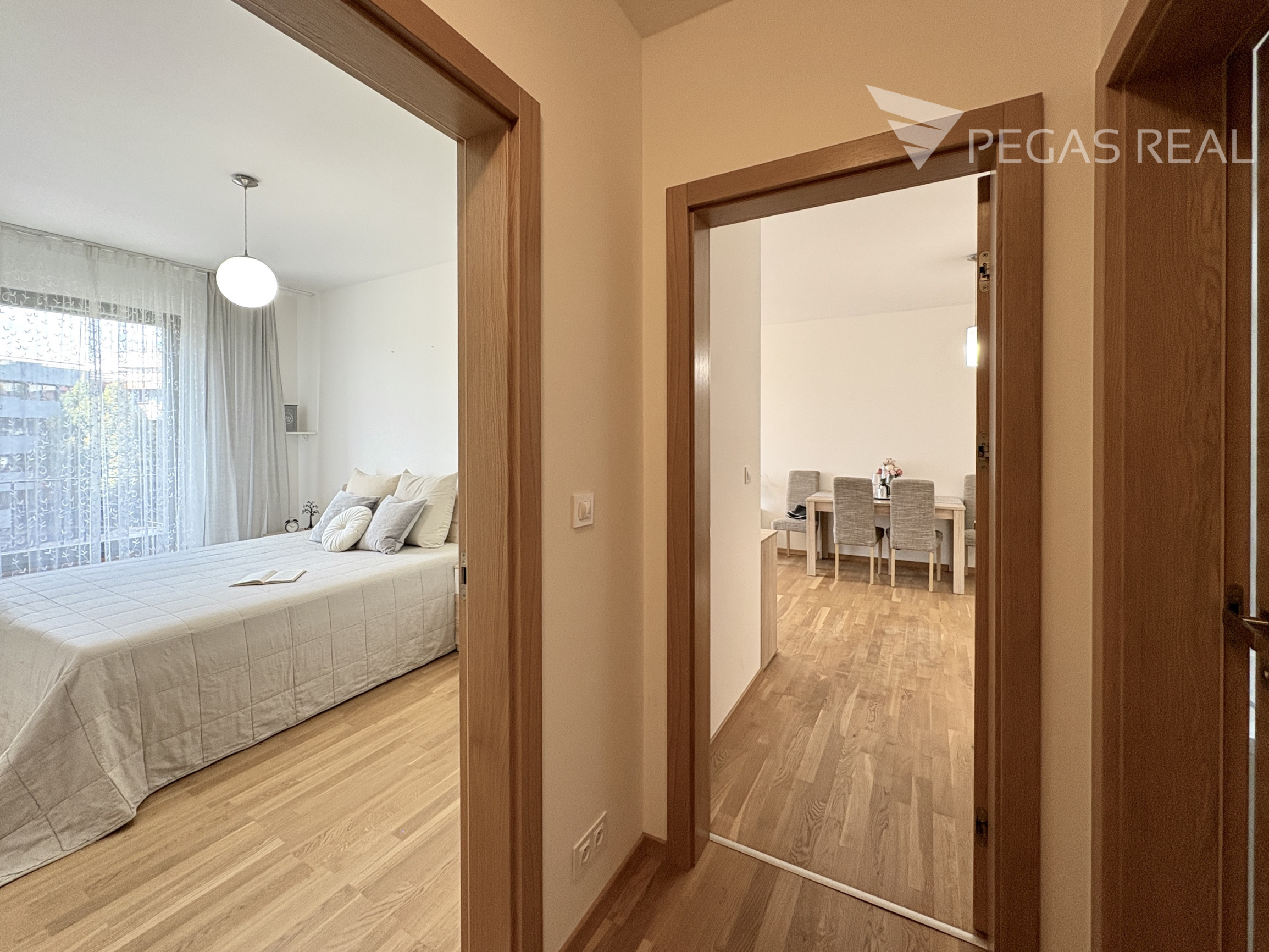 Realitná kancelária Pegas Real Vám exkluzívne ponúka na predaj kompletne zariadený 3-izbový byt v novostavbe vyhľadávaného rezidenčného projektu Cubicon Gardens v mestskej časti Bratislava – Karlova Ves na ul. Rudolfa Mocka. Byty sa vyznačujú slušným štandardom. Príjemne pôsobia najmä vysoké okná s francúzskymi balkónmi s elektricky ovládanými vonkajšími žalúziami, drevené parkety, či kvalitné dyhované interiérové dvere. Predávaný byt je západnej orientácie situovaný v prvej Slnečnici na 5/8 poschodí. Bytový dom je súčasťou záhradného komplexu s uzavretým vnútroblokom s oddychovou zónou a detským ihriskom, ktorý má pravidelne udržiavaný interiér aj exteriér, skvelého správcu a prístupný areál na šport, relax i zábavu. K bytu prislúcha veľká pivničná kobka v suteréne domu a na parkovanie je možnosť prikúpenia vonkajšieho parkovacieho státia priamo od developera.
