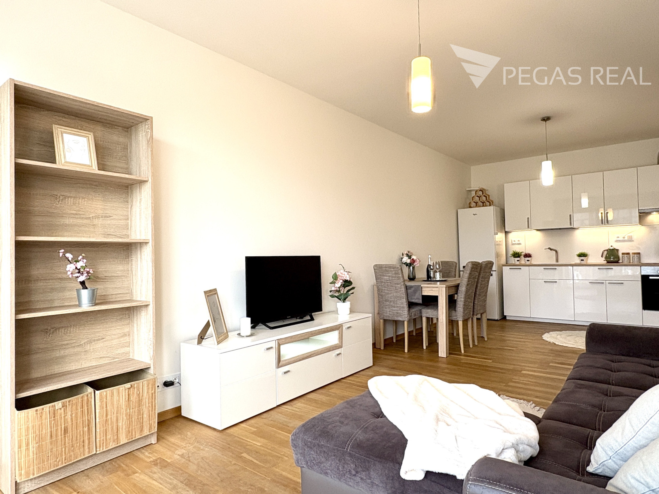 obývačka s jedálnym kútom spojená s kuchyňou