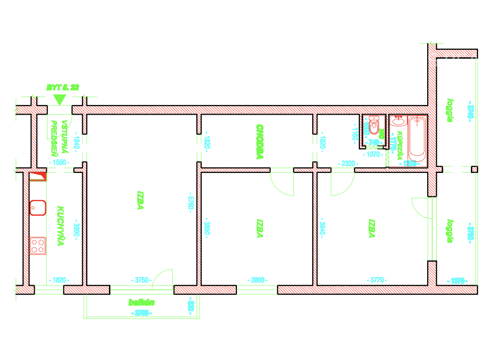 - Typ: 3-izbový byt