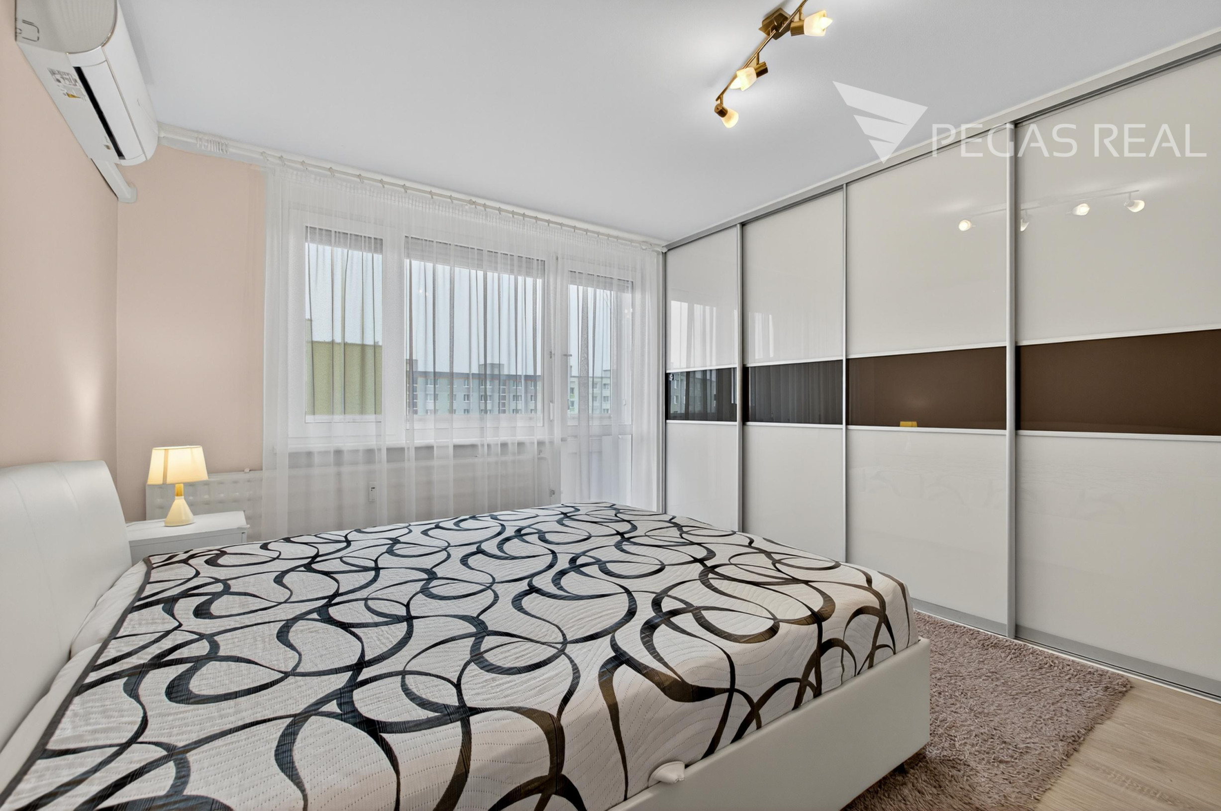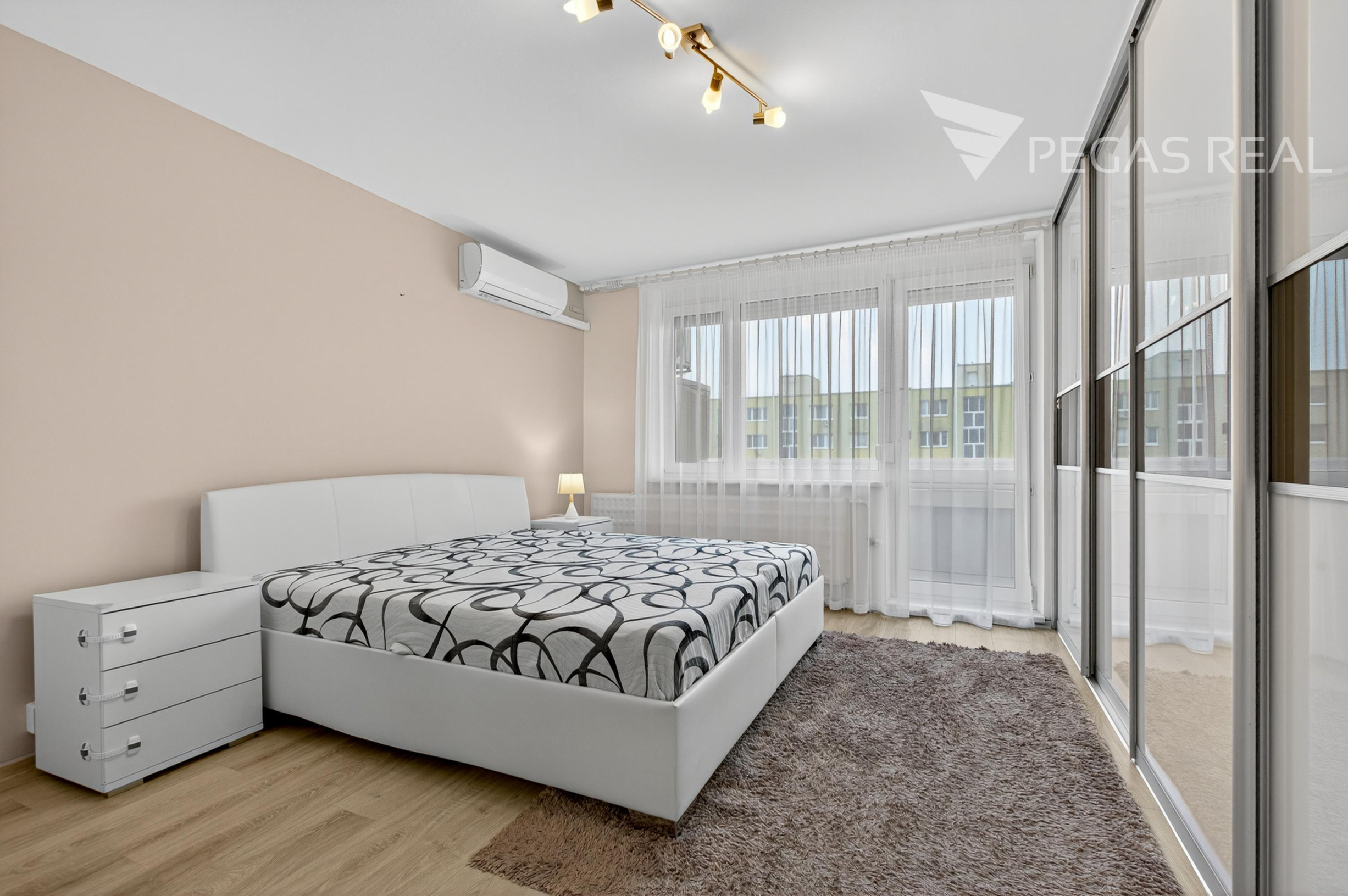 -spálňa s klimatizáciou, vstavanými skriňami a vystupom na loggiu