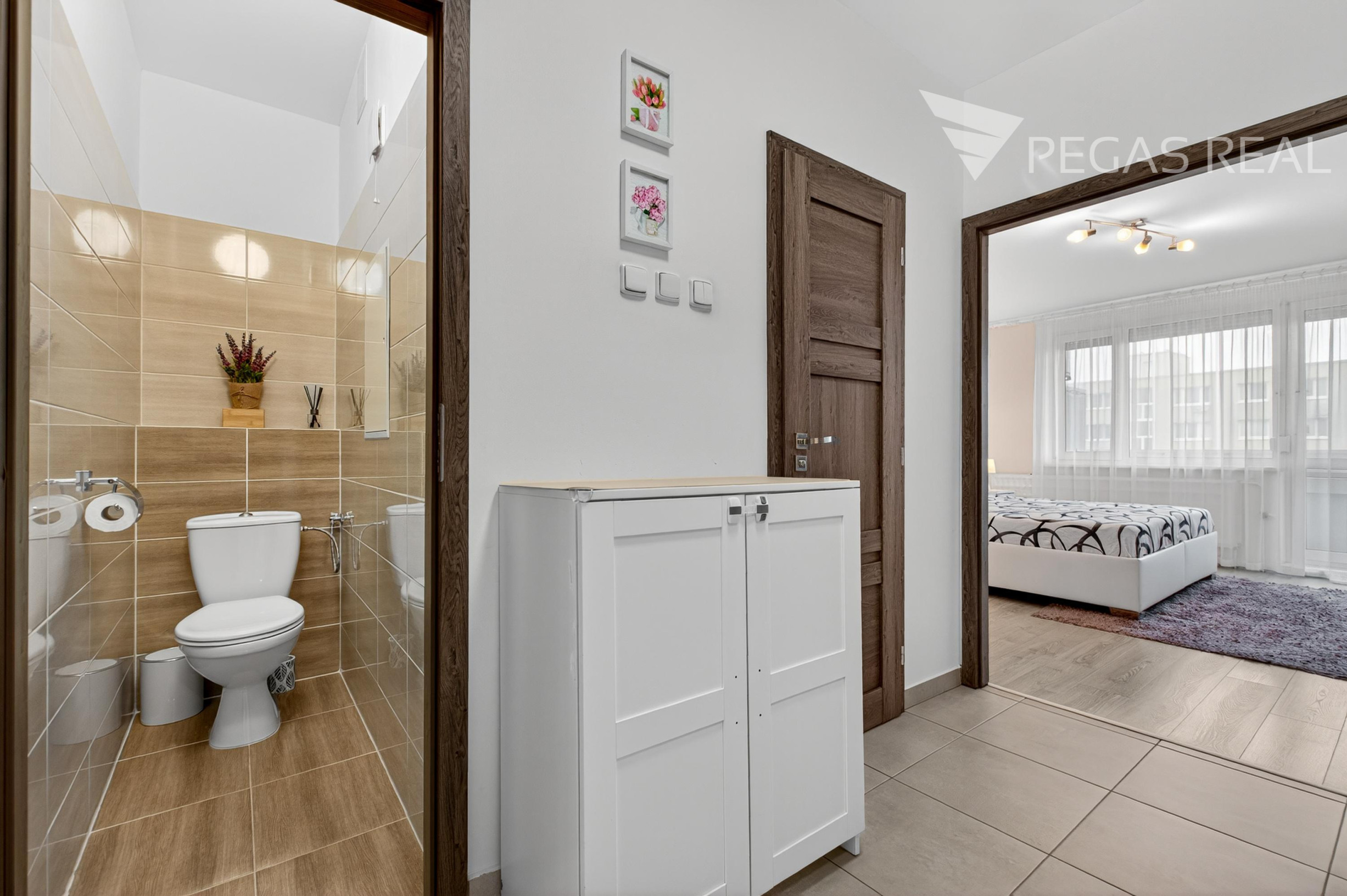 Byt je dispozične veľmi dobre vyriešený, každá miestnosť má logický a praktický vstup z priestrannej haly/predsiene.