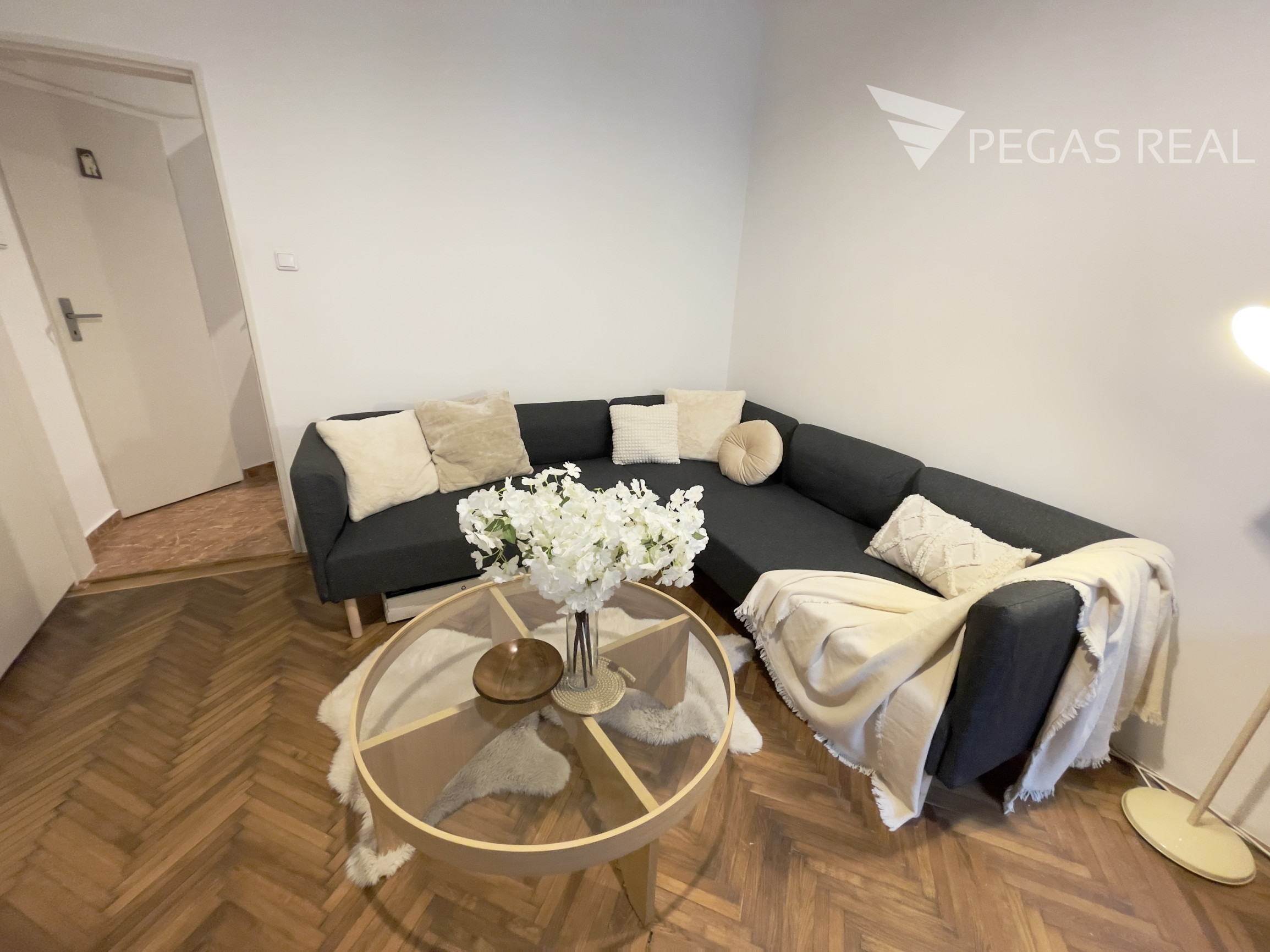 Z kuchyne je vstup do obývačky, taktiež po kompletnej rekonštrukcii – nové podlahy a nový nábytok (sedačka, TV skrinka, police),