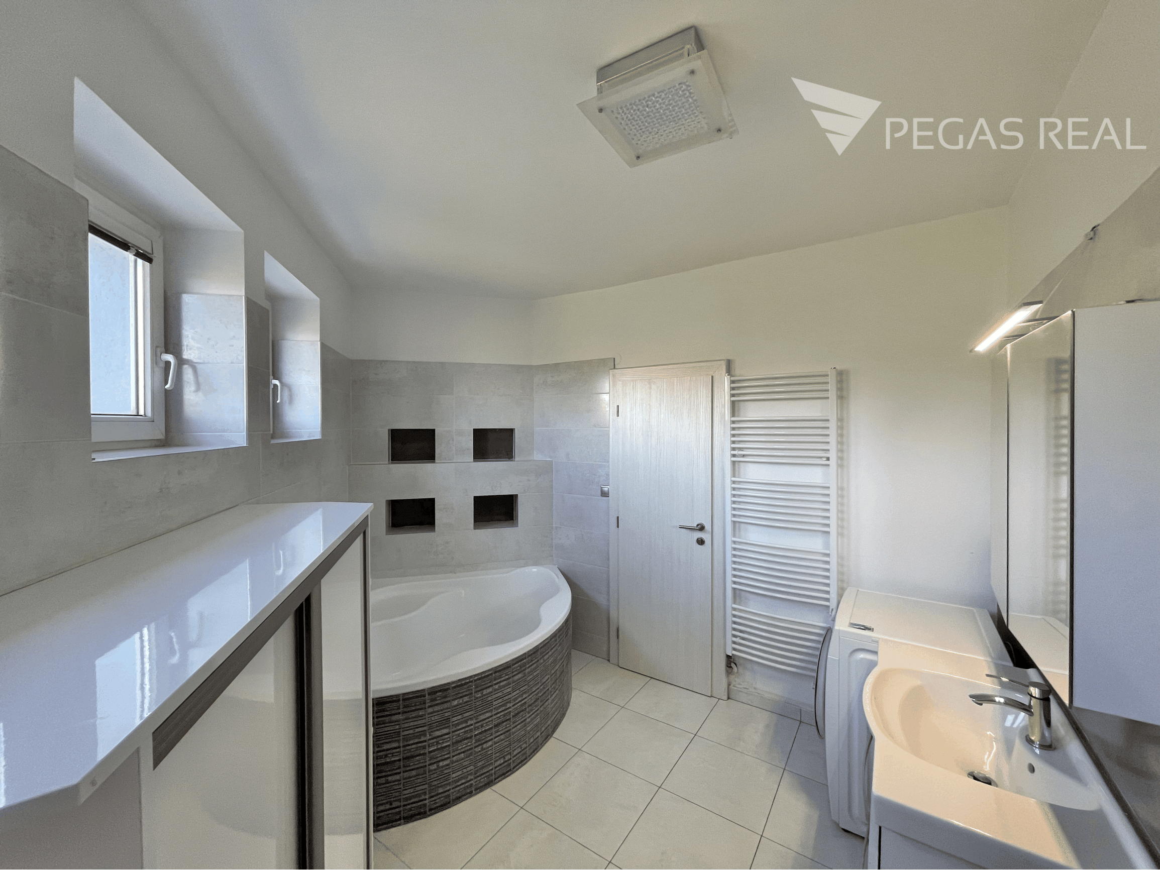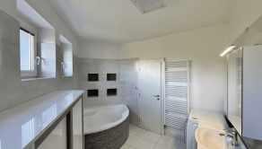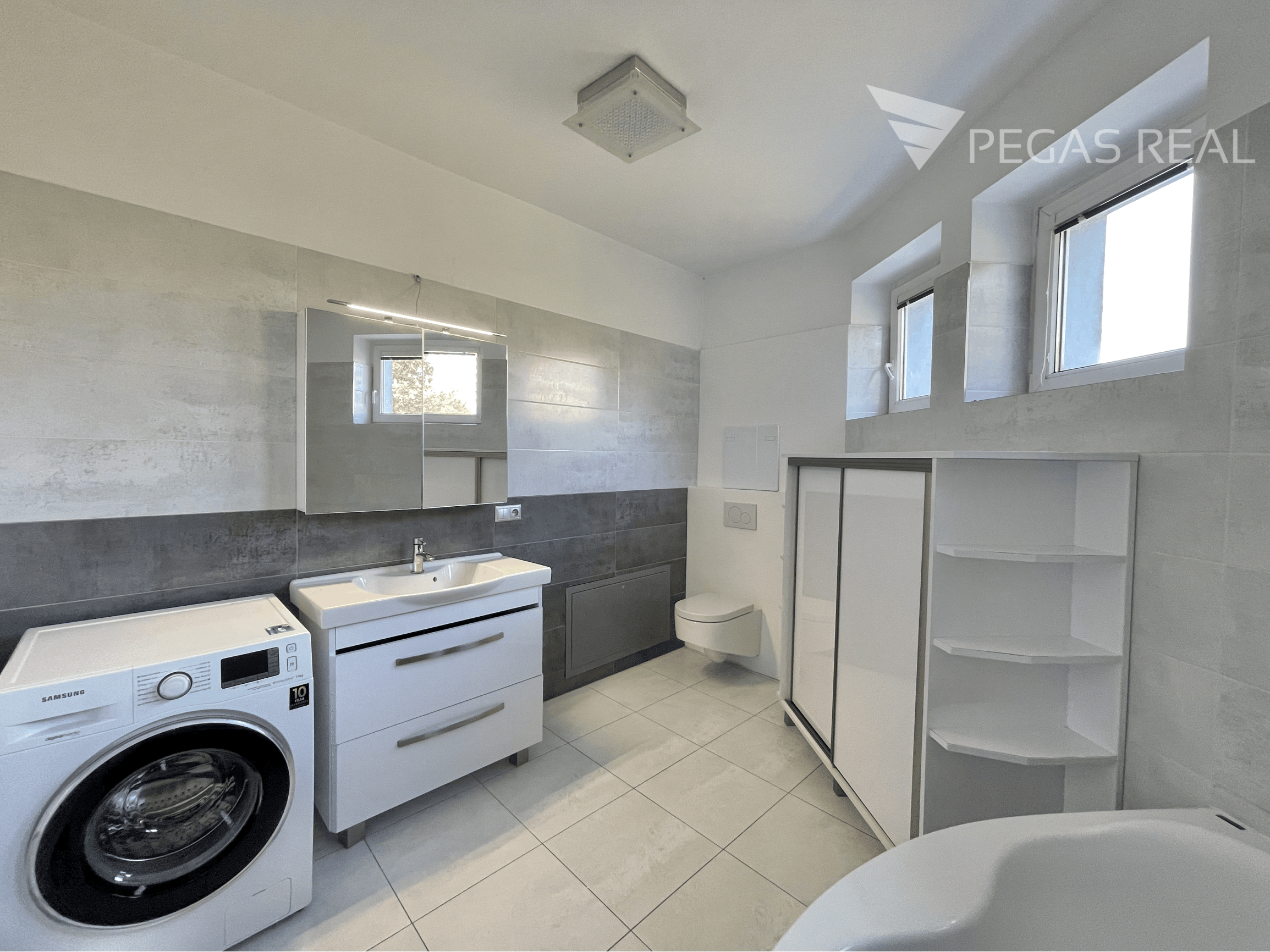 -priestranná kúpeľňa s rohovou vaňou, WC a práčkou zn. SAMSUNG