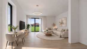 - priestranná kuchyňa prepojená s obývacou izbou s výstupom na terasu a do záhrady