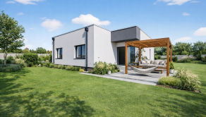 Ponúkame na predaj moderný 4-izbový bungalov nachádzajúci sa v novej a pokojnej štvrti rodinných domov v obci Tomášov. Dom je postavený v súčasnom architektonickom štýle s dôrazom na svetlosť priestoru, praktickú dispozíciu a komfort bývania.
