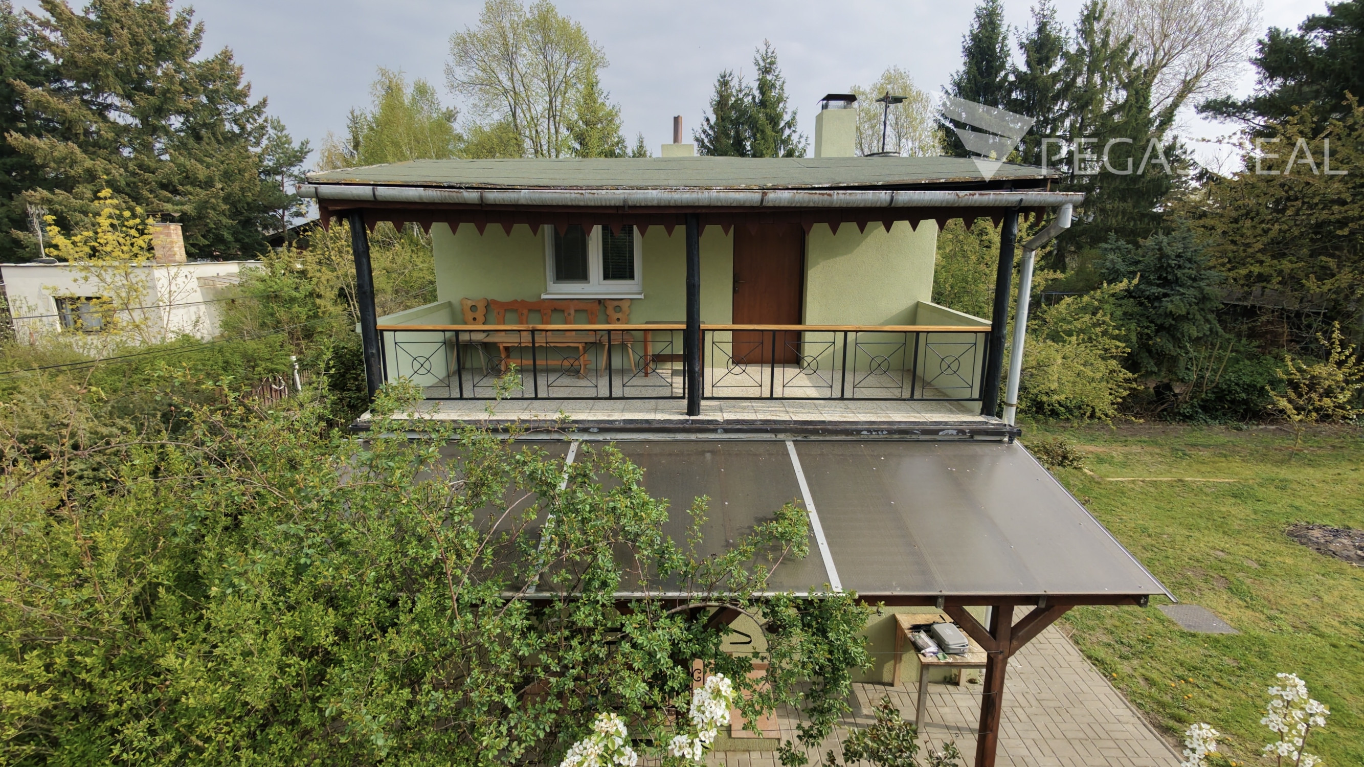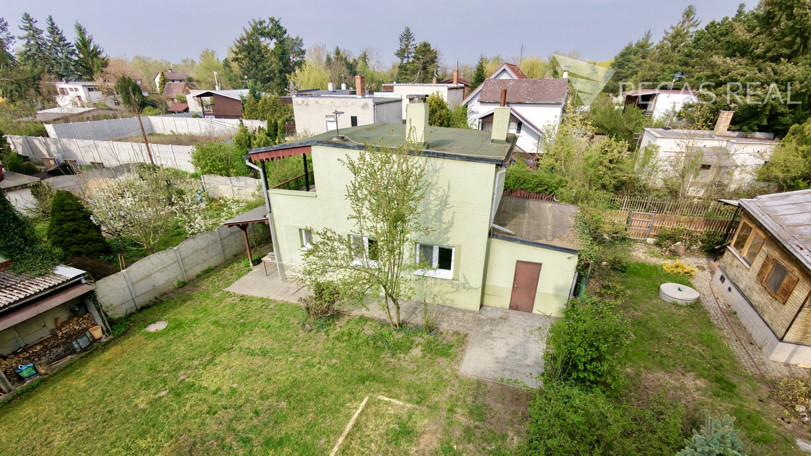 Pozemok je prístupný z dvoch strán, má teda len dvoch susedov po bokoch. Udržiavaná záhrada s ovocnými aj okrasnými stromami, kríkmi a kvetmi, s možnosťou dopestovania ovocia a zeleniny, je celá oplotená.